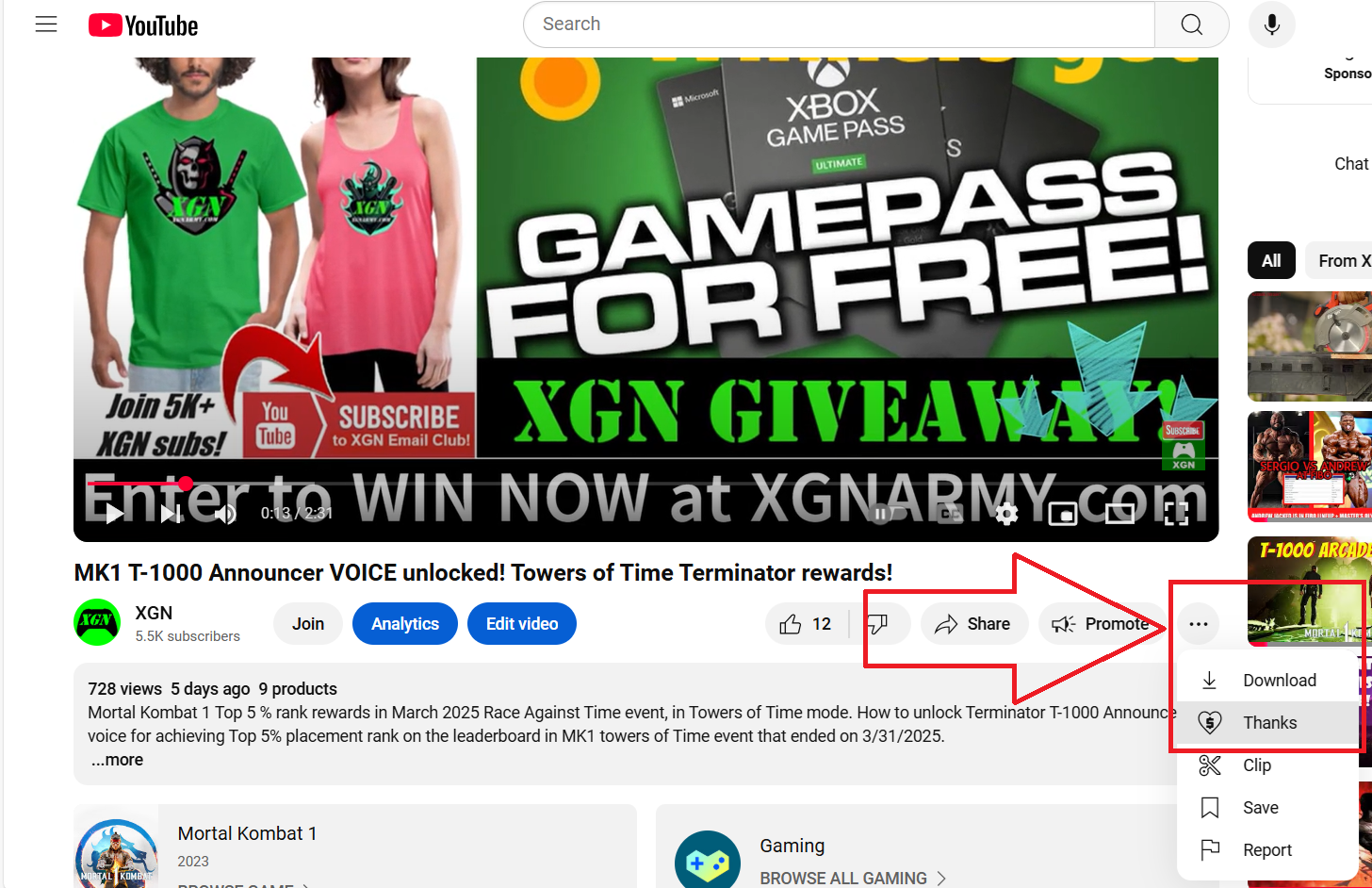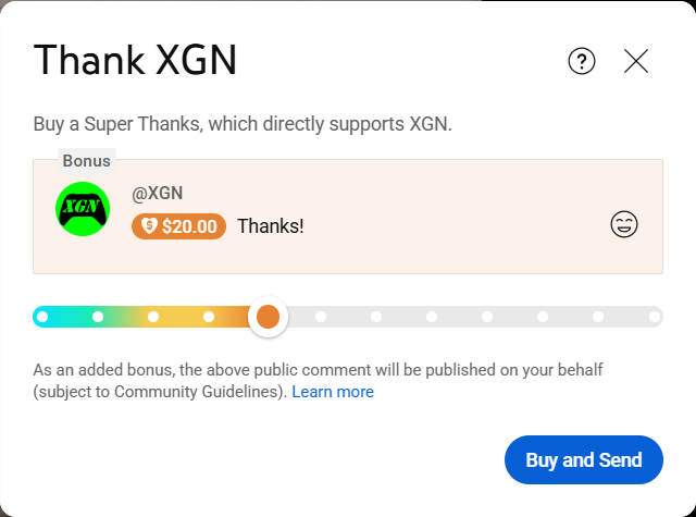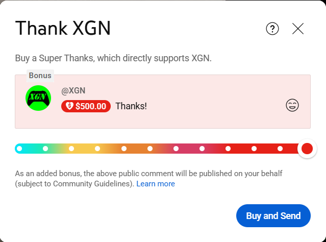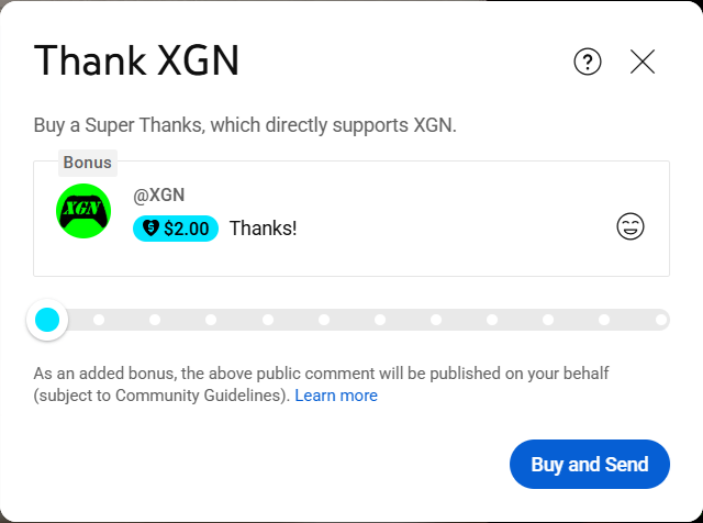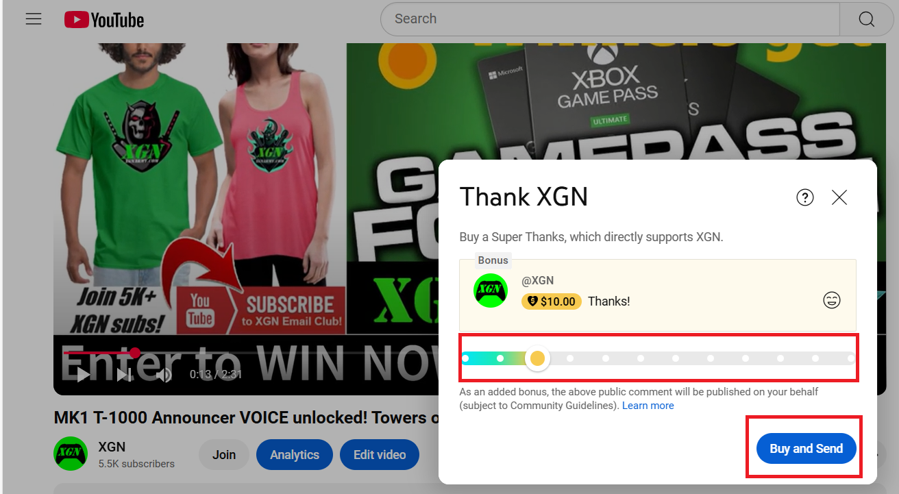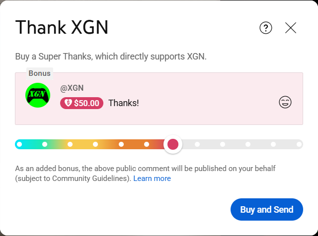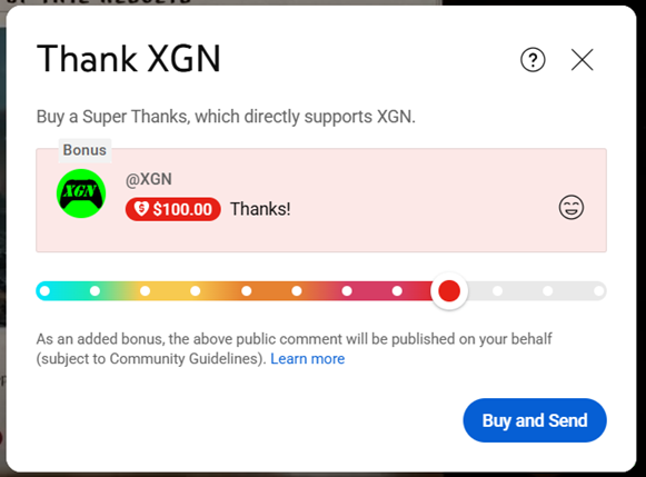 Step 2: Send a Super Thanks to the XGN YouTube channel.